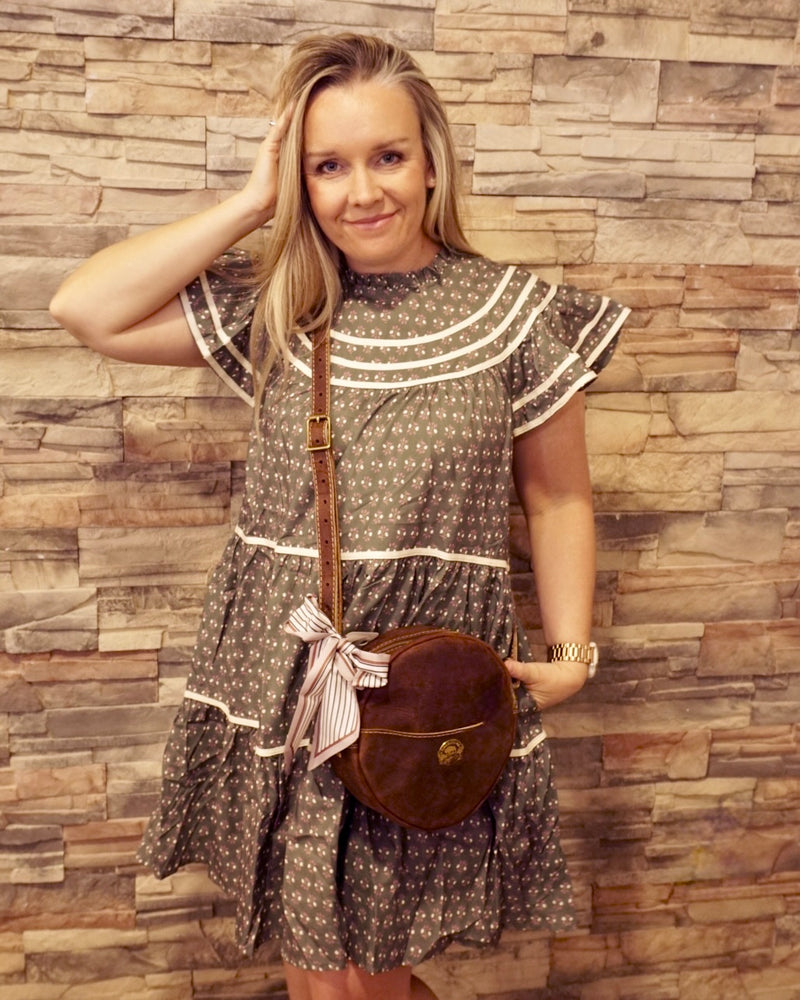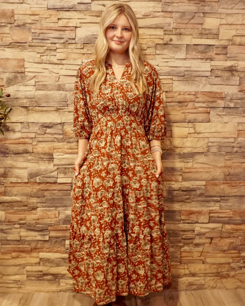 V-Neck Dress w/ Puff Sleeves - Chocolate