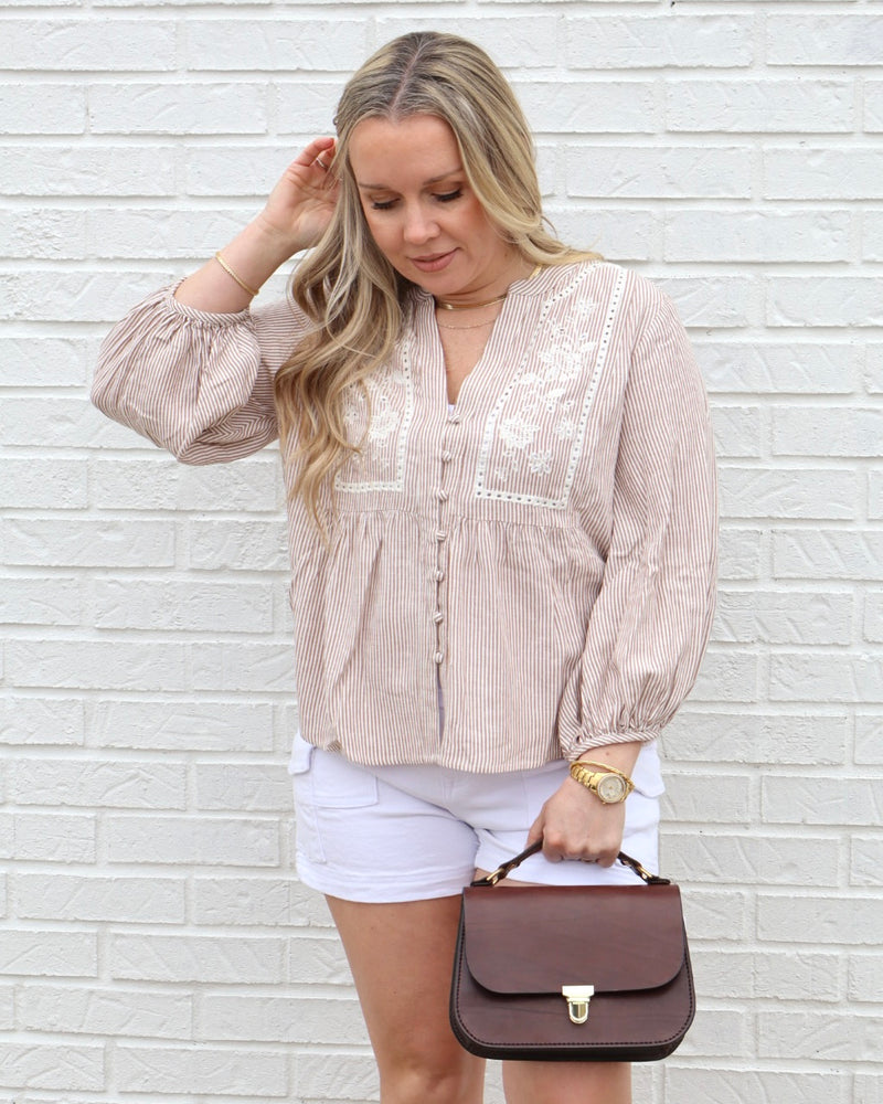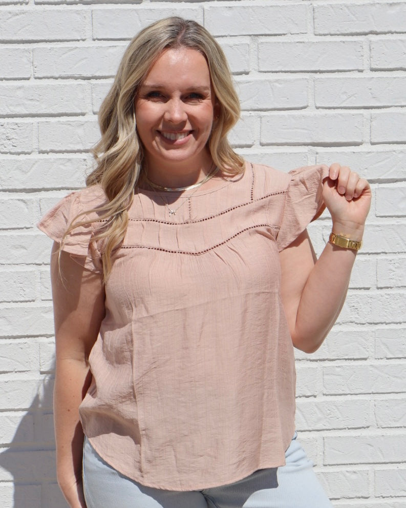 Lace Detail Flounce Sleeve Top-Oatmeal