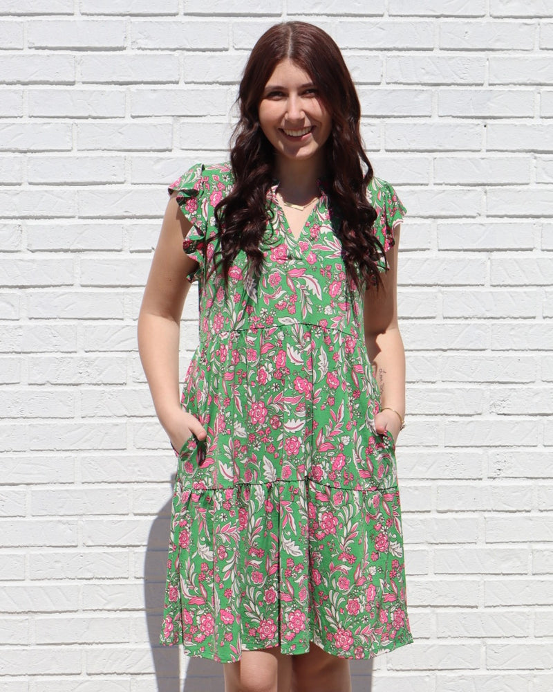 Flutter Sleeved Forever Dress- Kelly Green