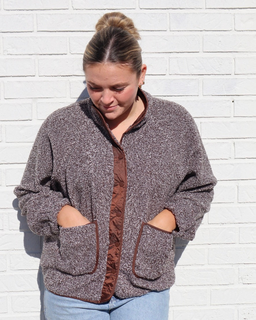 Layer up with our Contrast Fleece Jacket, designed for comfort and versatility. Available in rich brown or earthy olive, this jacket features striking contrast detailing that elevates any casual outfit. The soft fleece construction provides warmth without bulk, making it perfect for transitional weather or layering over your favorite tee. Whether you're heading outdoors or keeping cozy at home, this jacket delivers style and functionality in a timeless silhouette you'll reach for again and again.