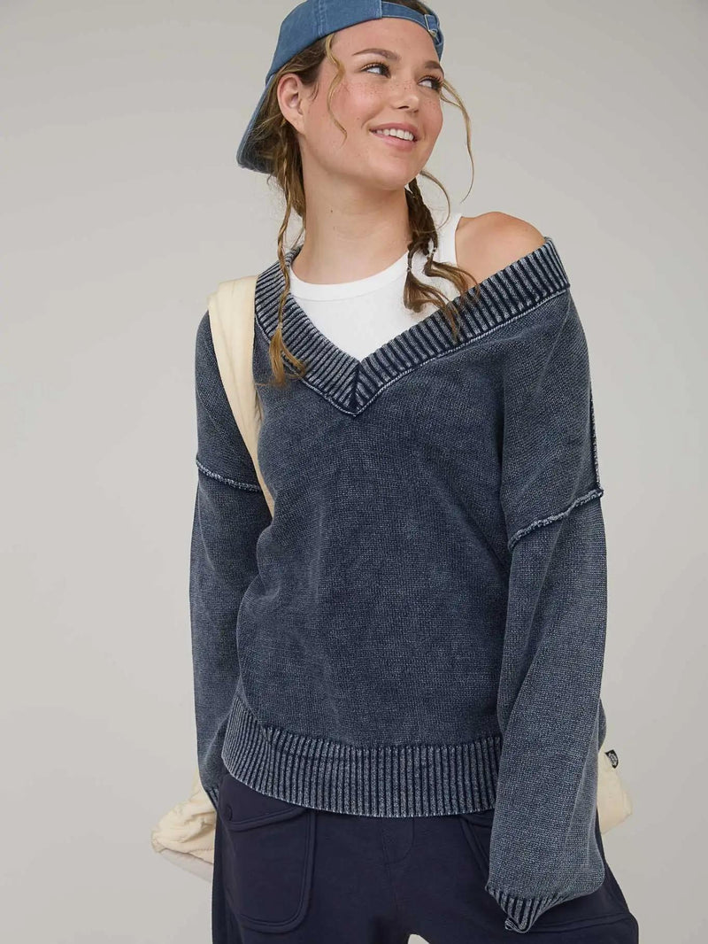 Acid Washed Exposed-Seam Pullover - Winter Rose