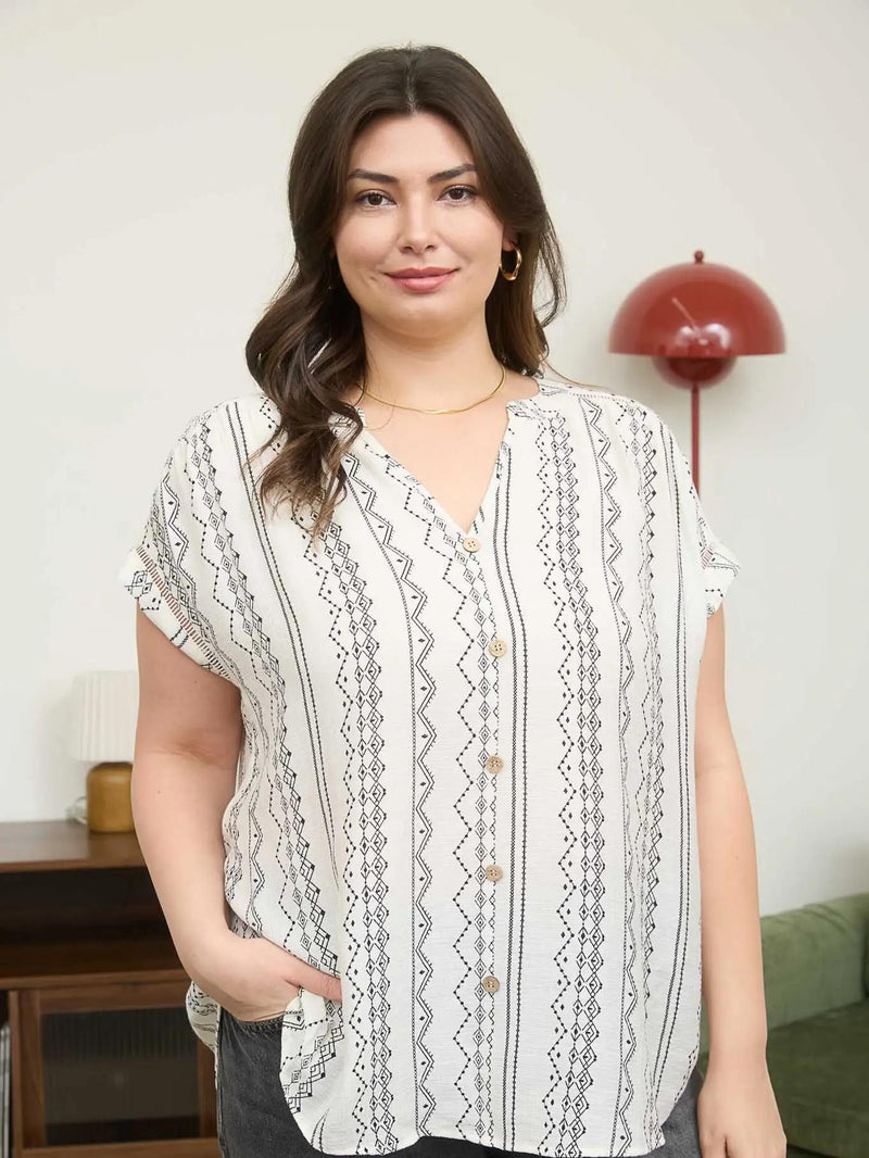 Plus Short Sleeve Striped Button Up